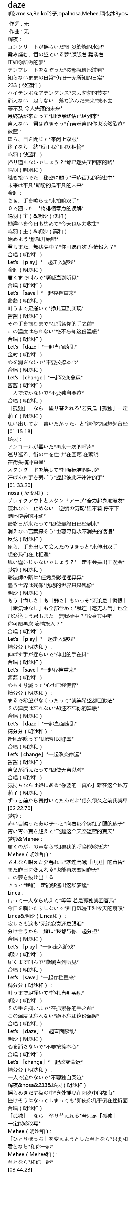 daze 歌词