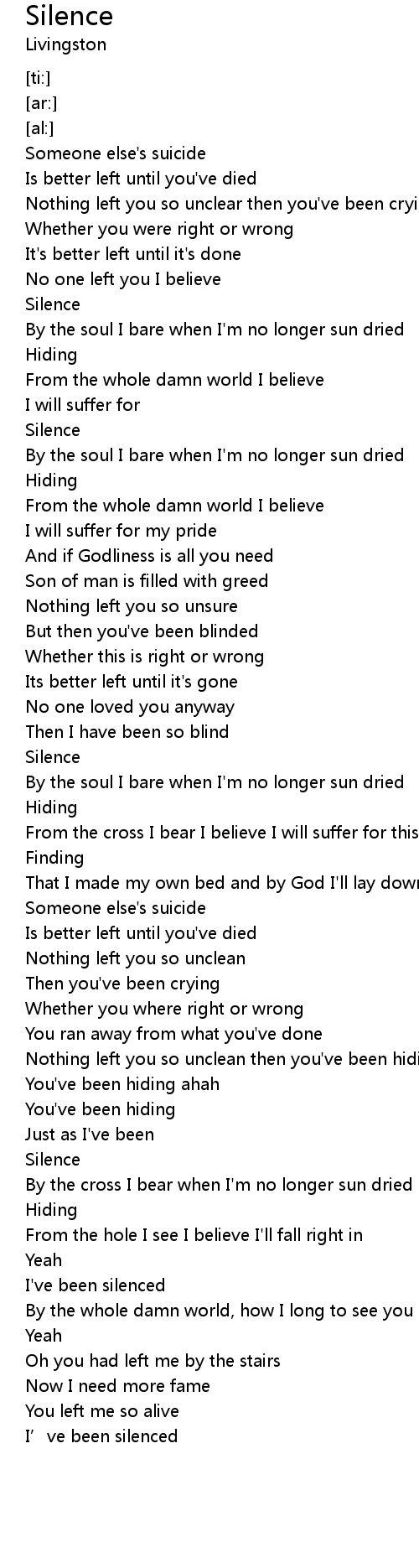 | [00:10.85] | Someone else's suicide |
