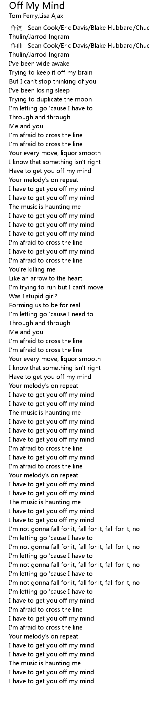 | [00:50.10] | I have to get you off my mind |