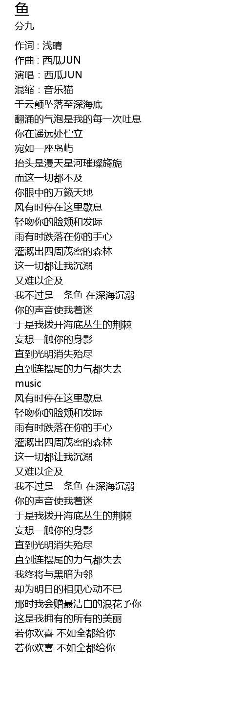 | 我不过是一条鱼 在深海沉溺 | |