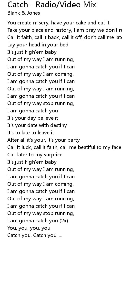 I am gonna catch you (2x) |