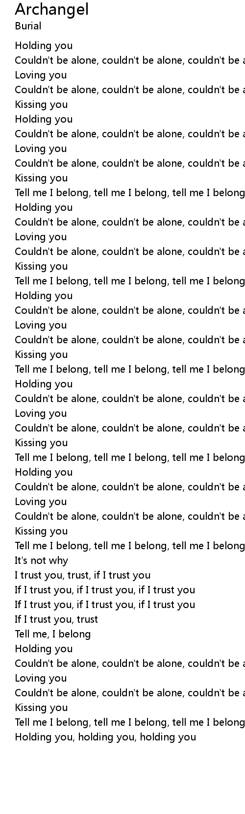 | [03:19.81] | Couldn't be alone, couldn't be alone, couldn't be alone |