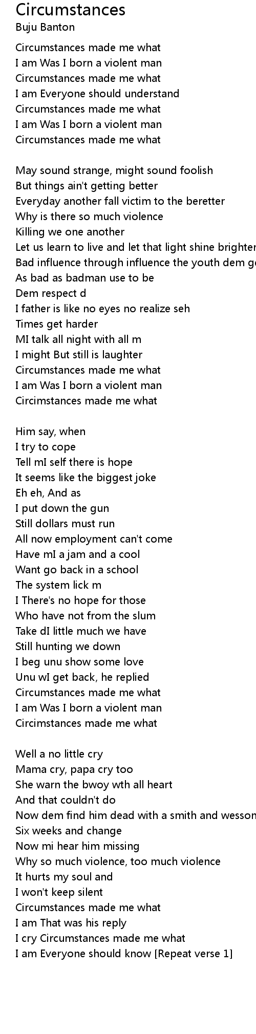 I cry Circumstances made me what |
