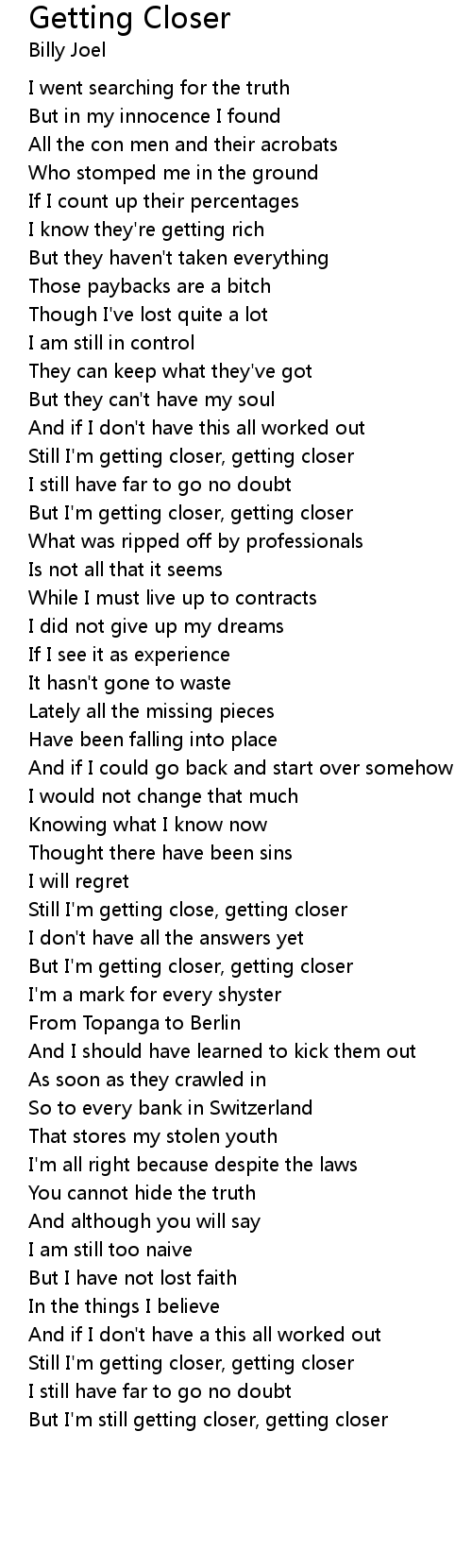 Getting Closer 歌词