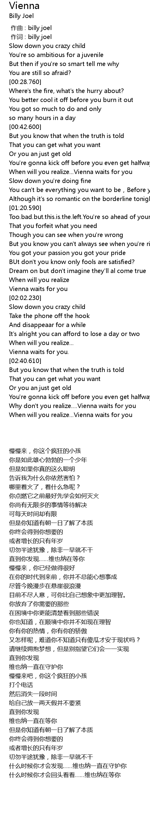 | [02:59.150] | Why don' t you realize. Vienna waits for you |
