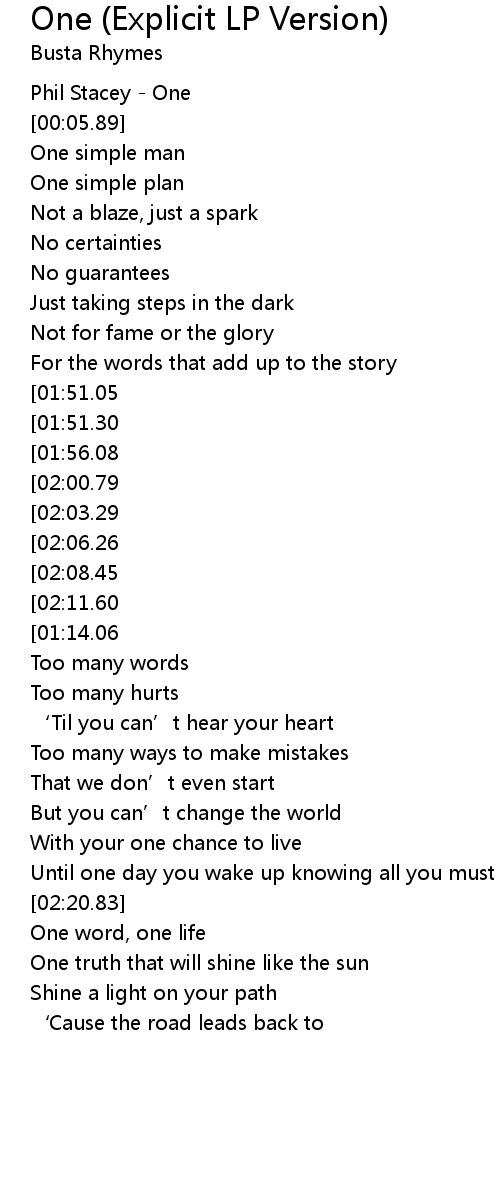 | 歌曲 | One (Explicit LP Version) |