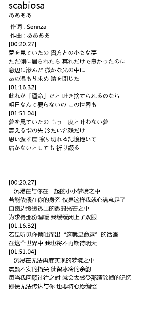 | [00:00.000] | 作词 : Sennzai |