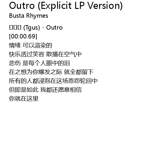 | 歌曲 | Outro (Explicit LP Version) |