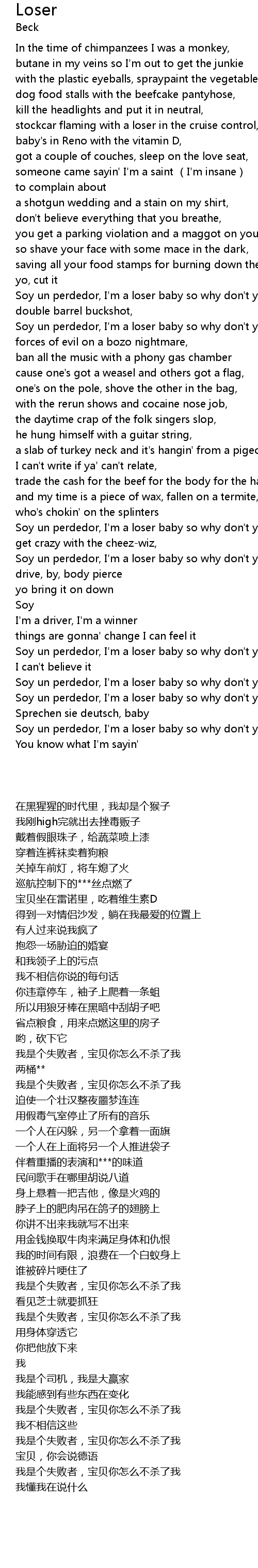 | [03:35.78] | Soy un perdedor, I'm a loser baby so why don't you kill me |