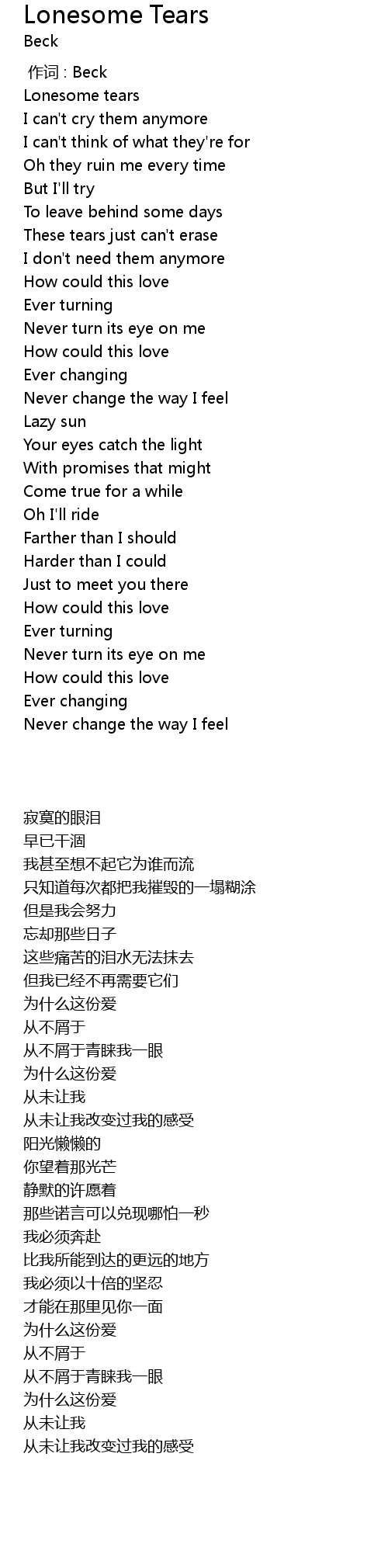 | [00:00.00] | 作词 : Beck |