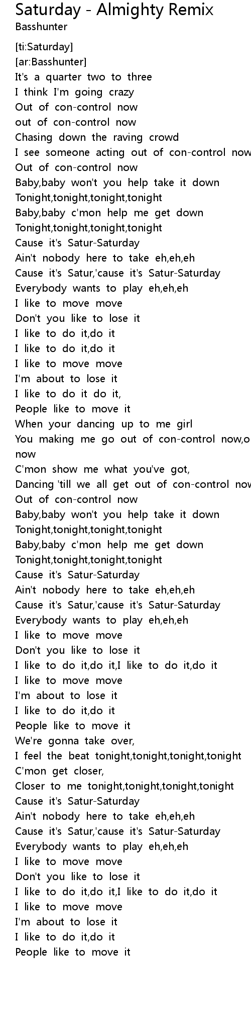 [02:33.83] Cause it's Satur,'cause it's Satur-Saturday