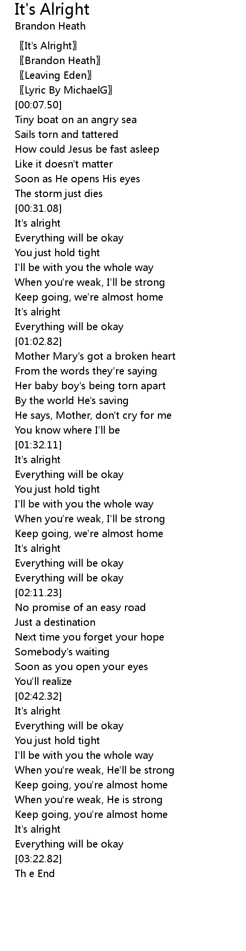 | [00:31.40] | It' s alright |