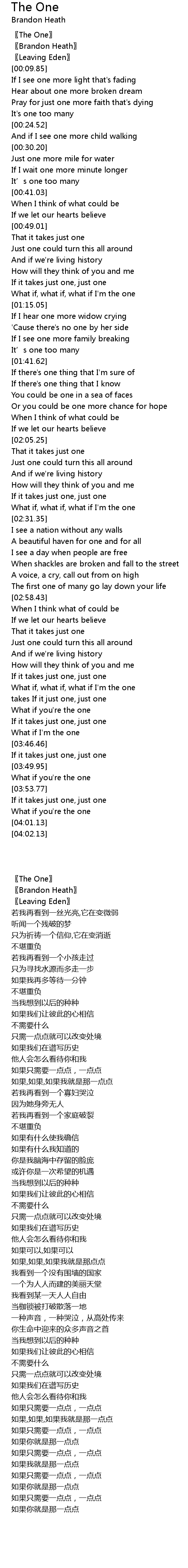 | [00:03.11] | 〖The One〗 |