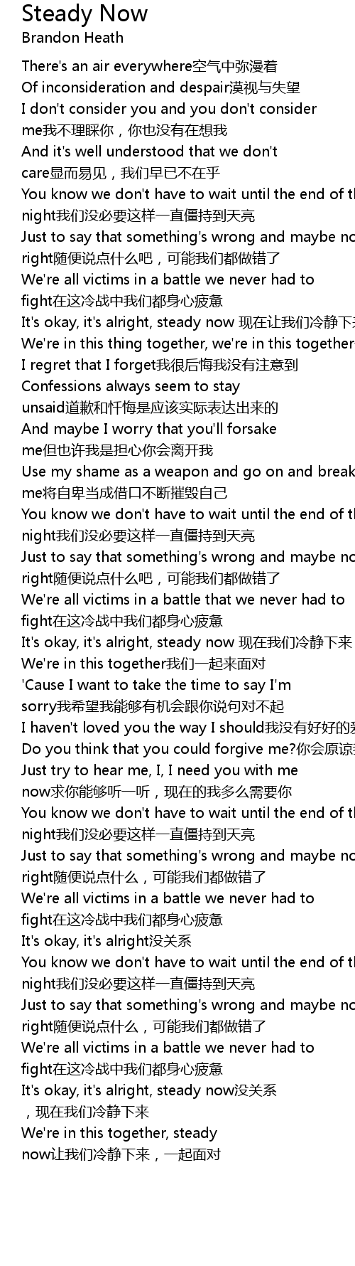 | [01:02.000] | It' s okay, it' s alright, steady now xiàn zài ràng wǒ men lěng jìng xià lái |