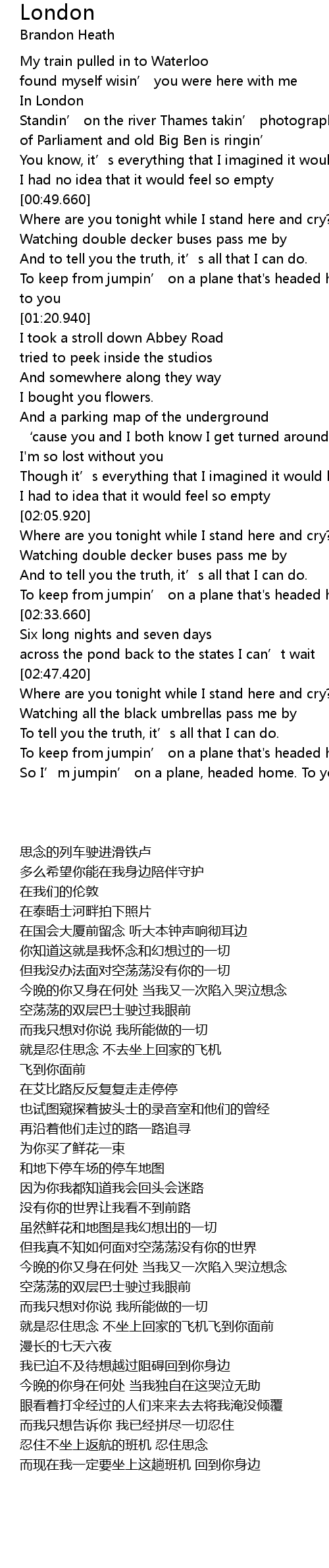 | [00:22.850] | Standin’ on the river Thames takin’ photographs |