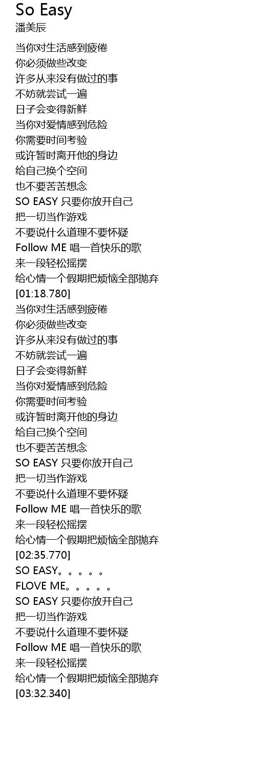 | [03:10.050] | SO EASY 只要你放开自己 |