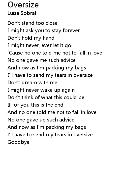 | I' ll have to send my tears in oversize | |