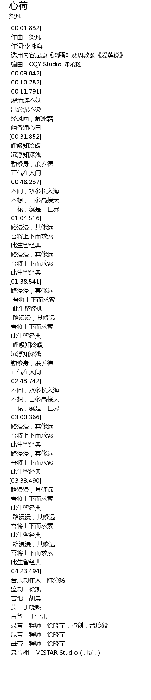 | [04:26.491] | 录音工程师:徐晓宇,卢创,孟玲毅 |