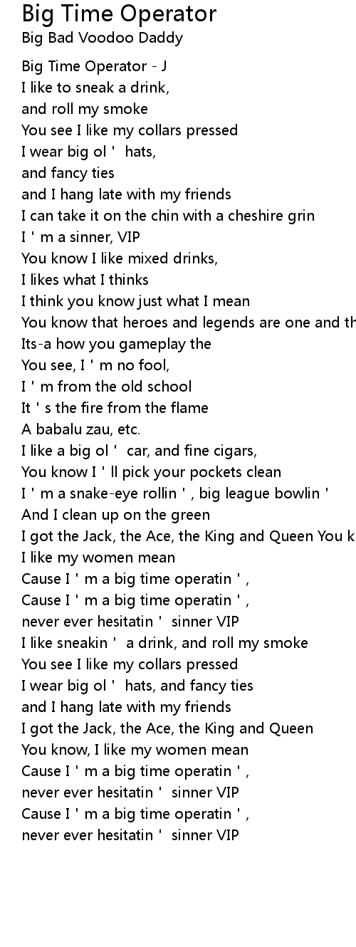 | [02:30.76] | I wear big ol' hats, and fancy ties |