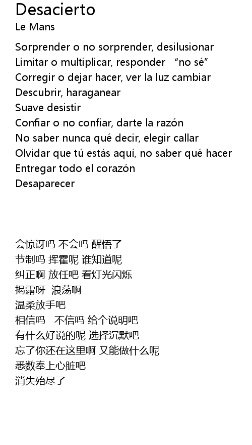 | [03:28.34] | Olvidar que tu esta s aqui, no saber que hacer |