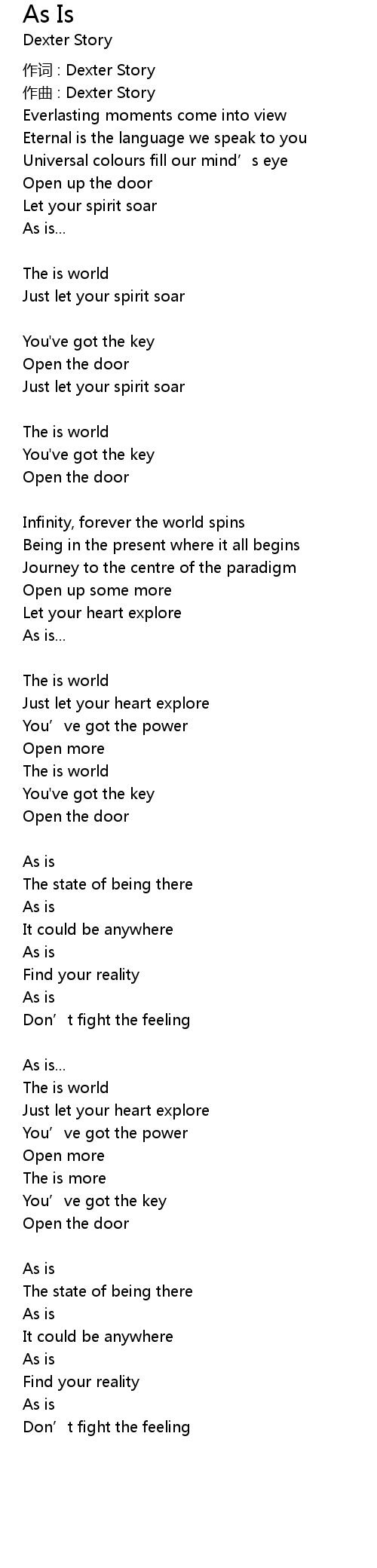 | 歌曲 | As Is |