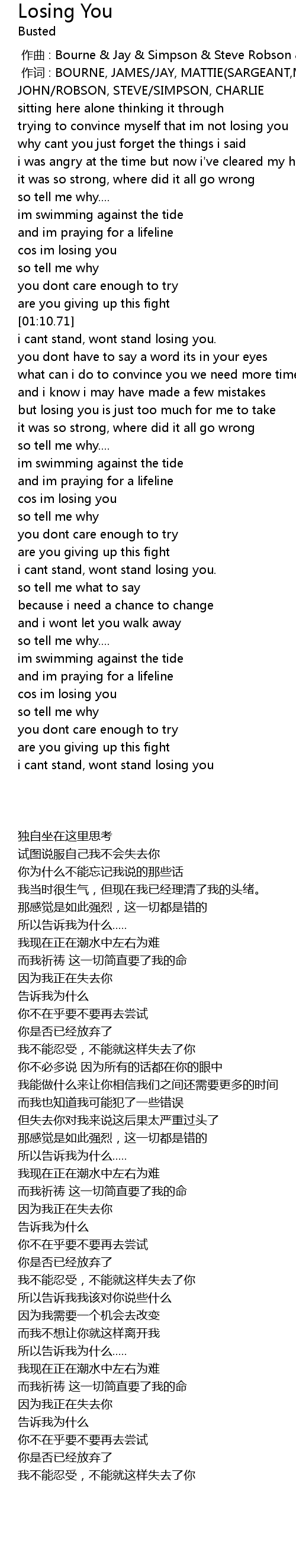 | [01:11.53] | i cant stand, wont stand losing you. |