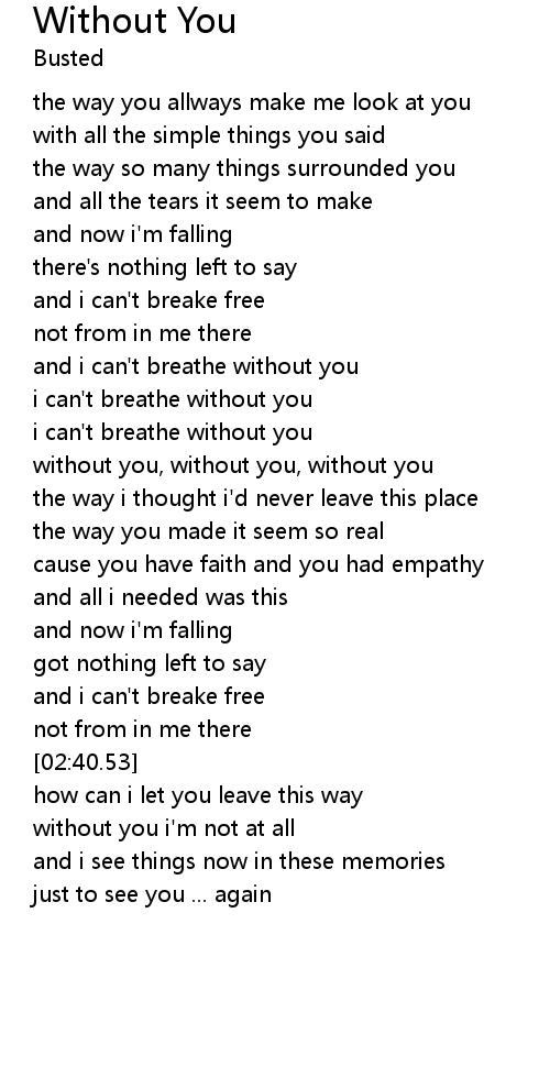 | [01:42.55] | without you, without you, without you |