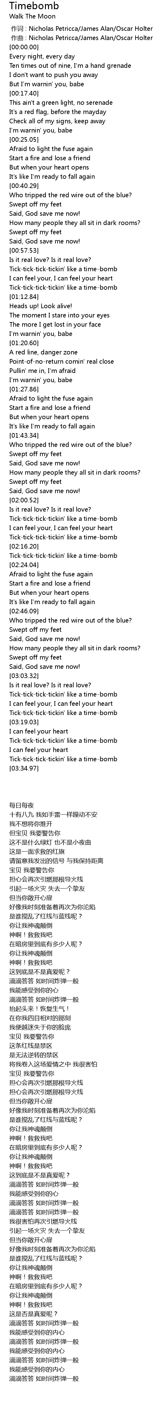 | [03:23.56] | Tick-tick-tick-tickin' like a time-bomb |