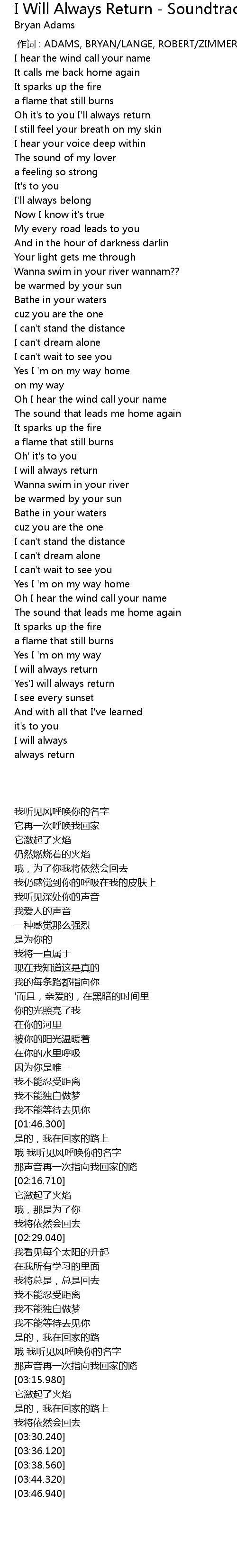 | [03:25.460] | I will always return |