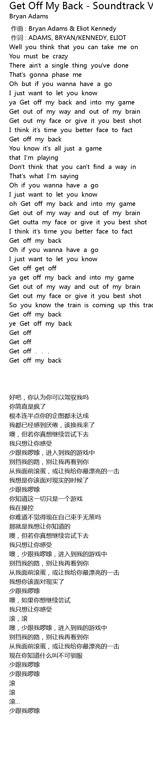 | 歌曲 | Get Off My Back - Soundtrack Version |