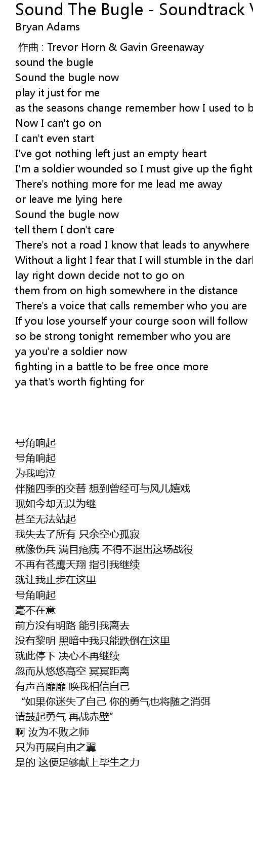 | 歌曲 | Sound The Bugle - Soundtrack Version |