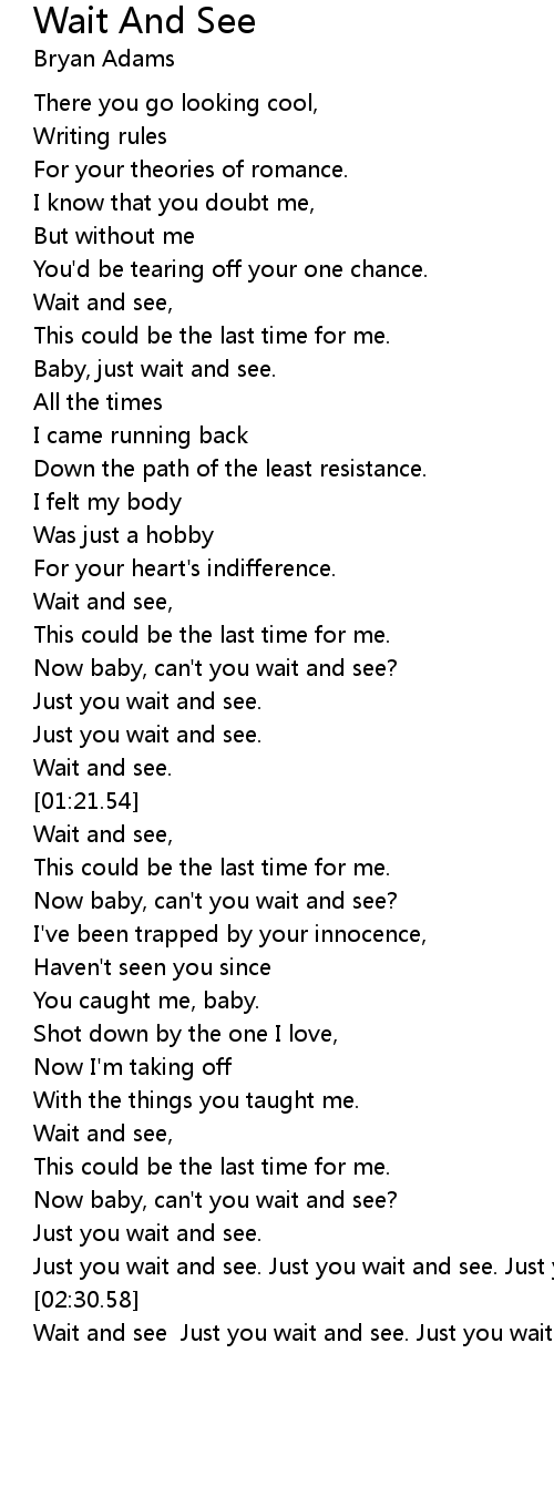 Just you wait and see. Just you wait and see. Just you wait and see. |