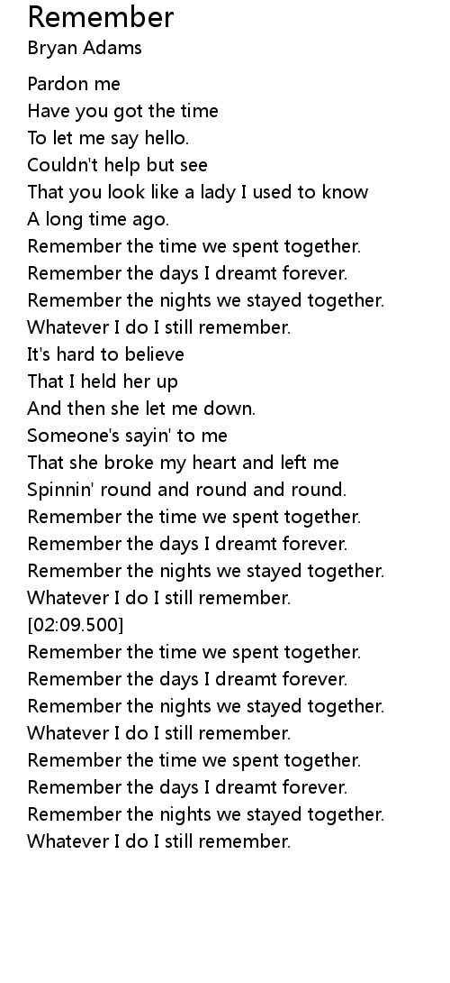 | [02:02.340] | Whatever I do I still remember. |