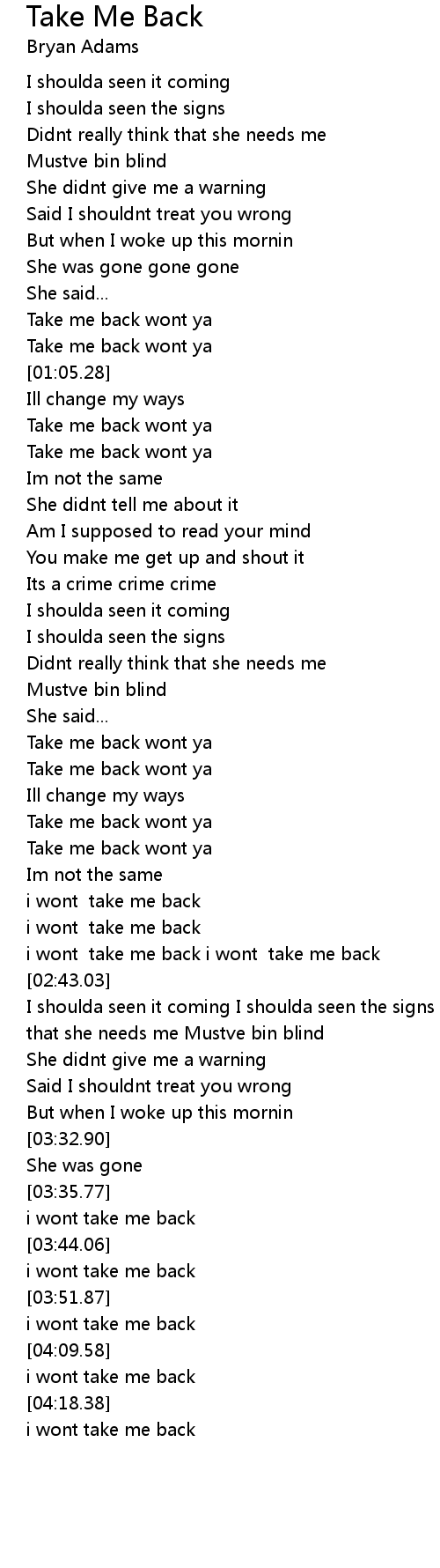 i wont take me back |