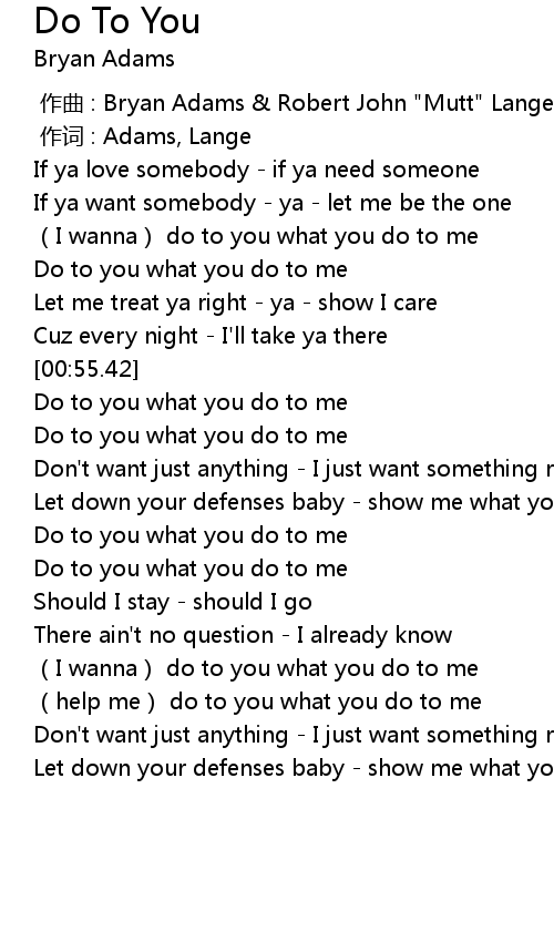 | [01:46.77] | (I wanna) do to you what you do to me |