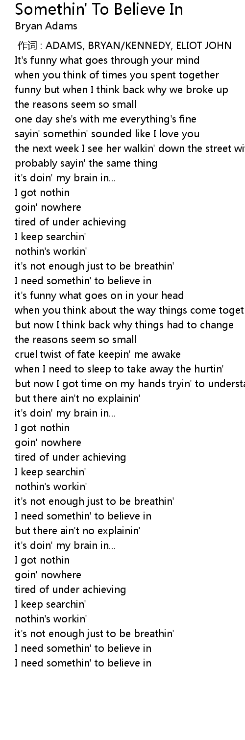 | 歌曲 | Somethin' To Believe In |