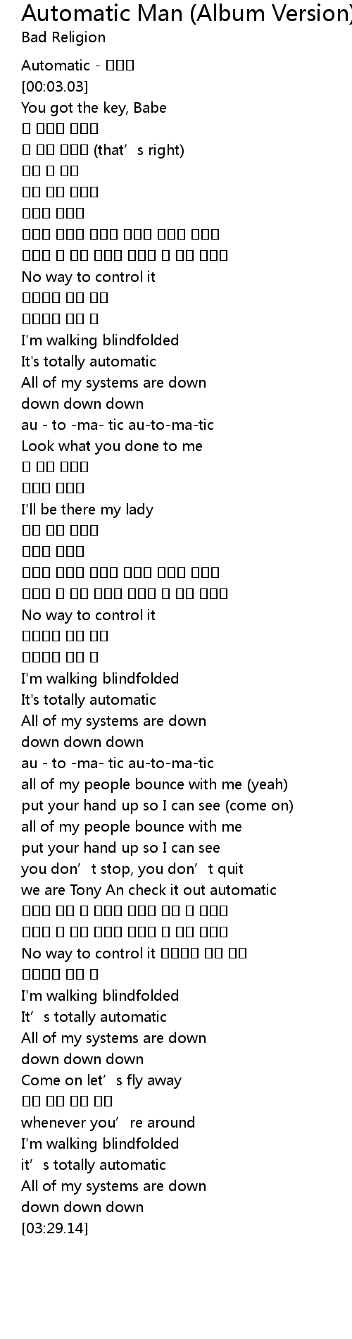 | [01:10.04] | au to ma tic automatic |