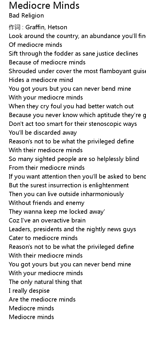 | 歌曲 | Mediocre Minds |