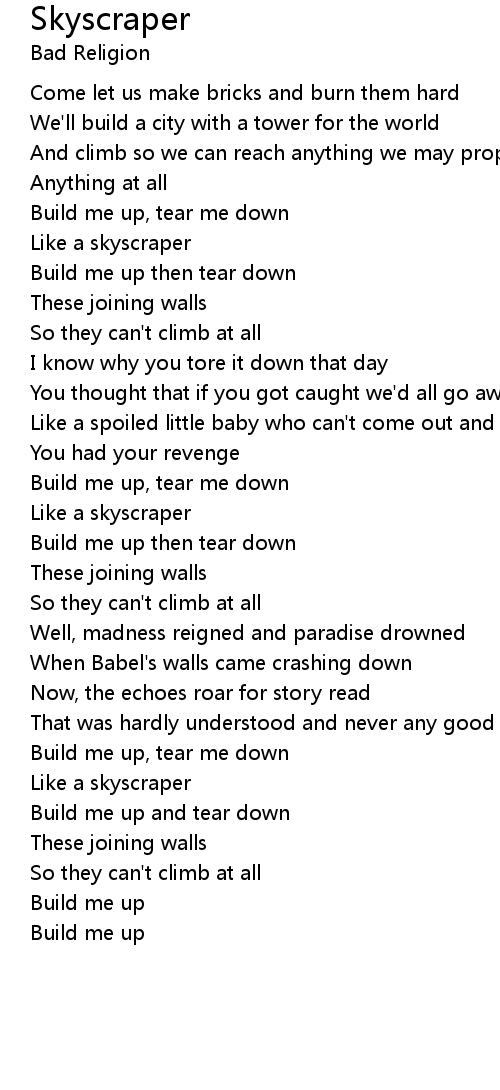 Build me up and tear down |