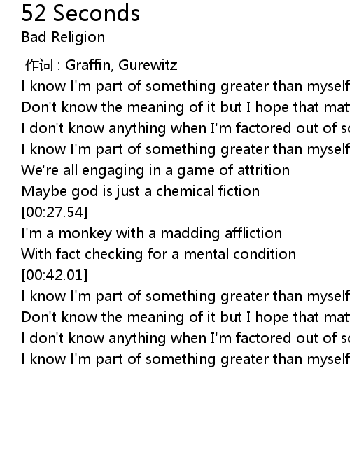 | [00:52.11] | I know I' m part of something greater than myself |