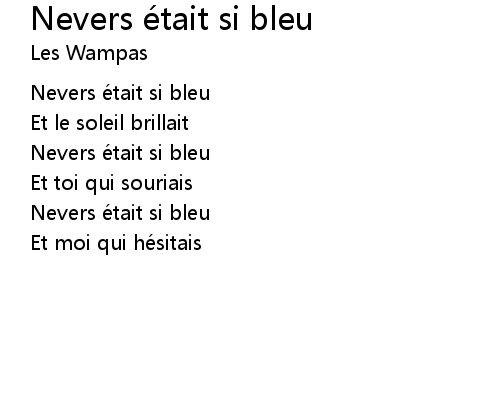 | 歌曲 | Nevers était si bleu |