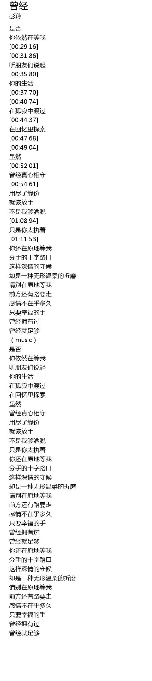 | [00:52.45] | céng jīng zhēn xīn xiāng shǒu |