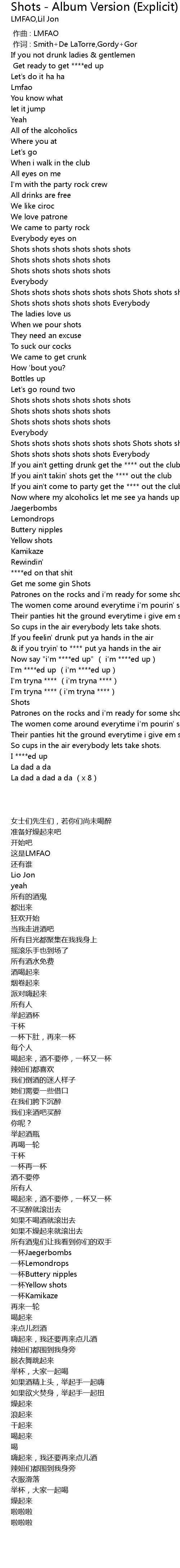 | [00:00.00] | 作曲 : LMFAO |