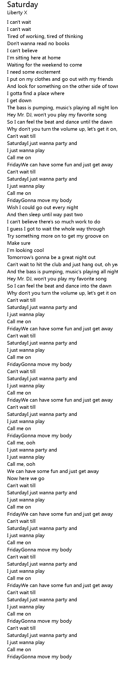 SaturdayI just wanna party and |