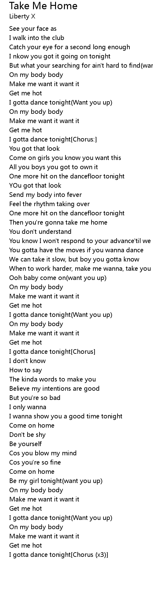 I gotta dance tonight[Chorus (x3)] |
