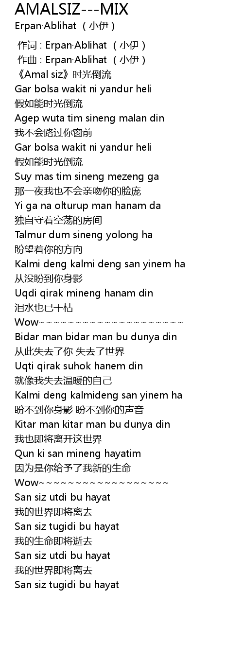 | [00:00.000] | 作词 : Erpan·Ablihat (小伊) |