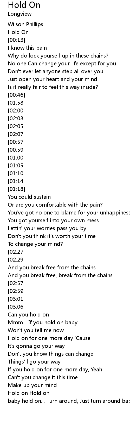 | [02:54][02:05][00:54] | Hold you down and make you cry |