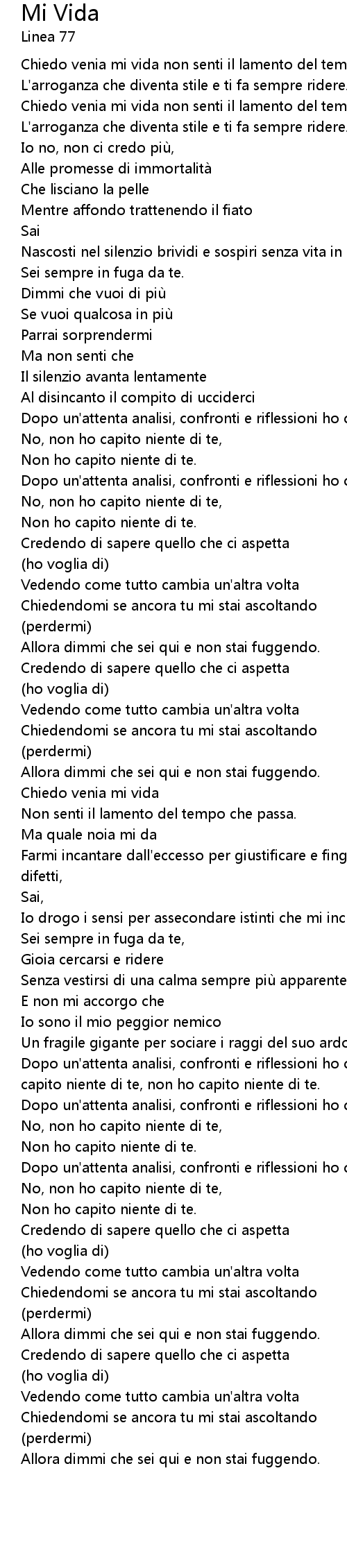 | Chiedo venia mi vida non senti il lamento del tempo che passa, | |