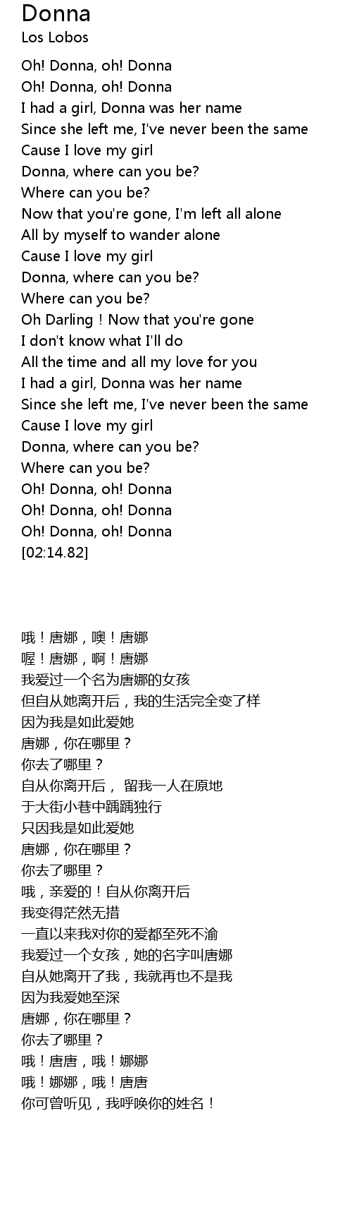 | [02:07.63] | Oh! Donna, oh! Donna |