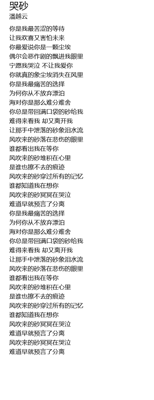 | [01:47.539] | 风吹来的砂堆积在心里 |